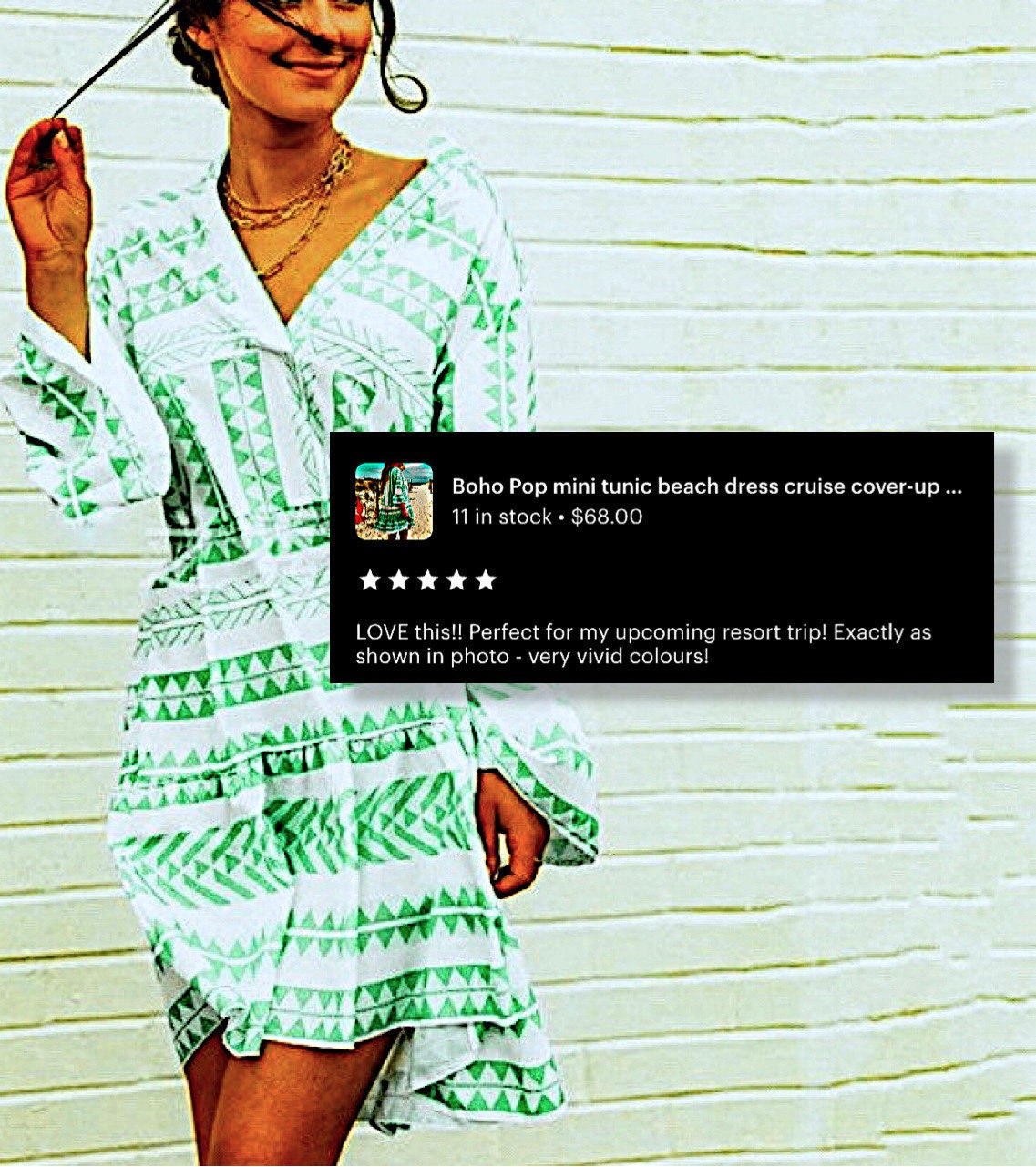 Boho Pop mini tunic beach dress cruise cover-up top white + sea-green or bubble hot pink print S L 2XL 3XL women’s ladies 2024 cruise resort