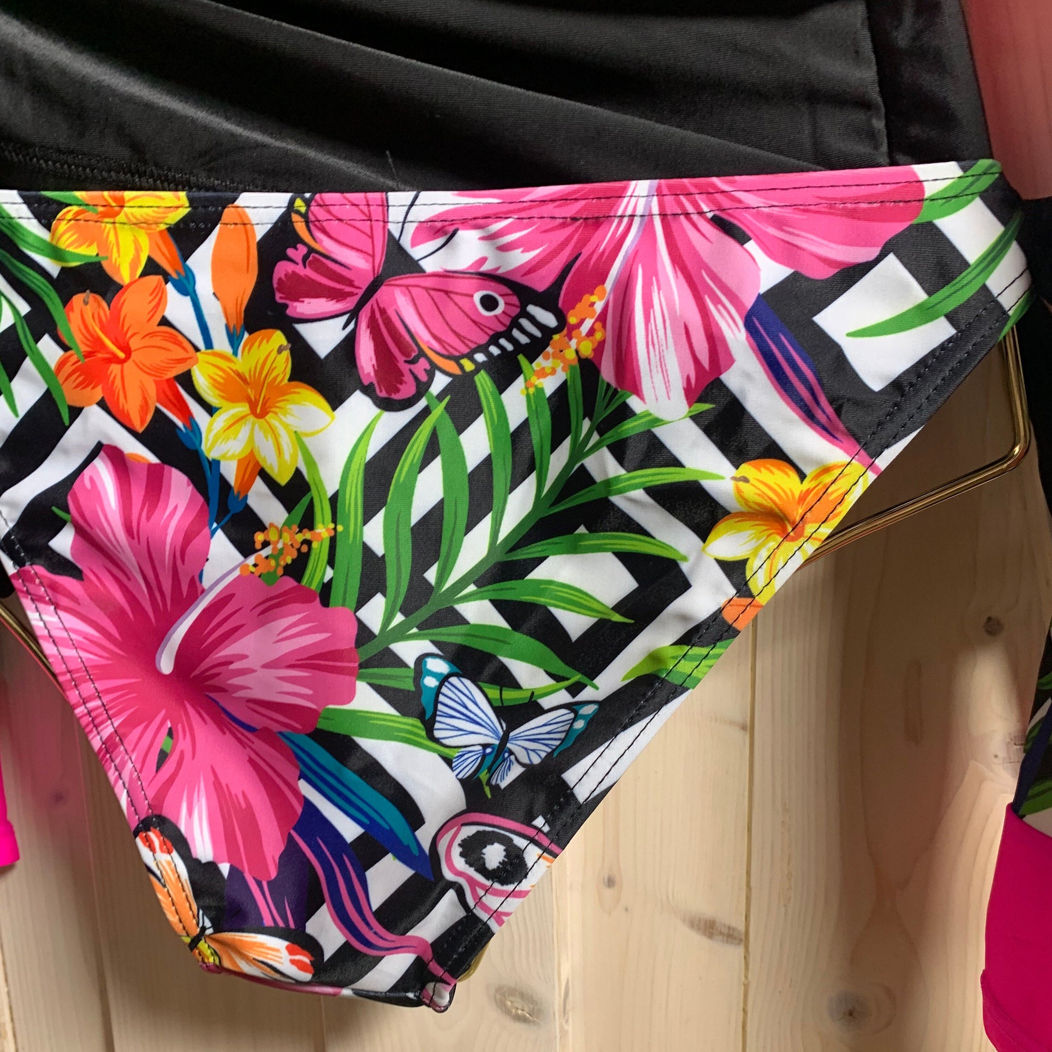 #black & #neon #pink #butterflies & #hibiscus #florals + #mod juxtaposing #geometrics